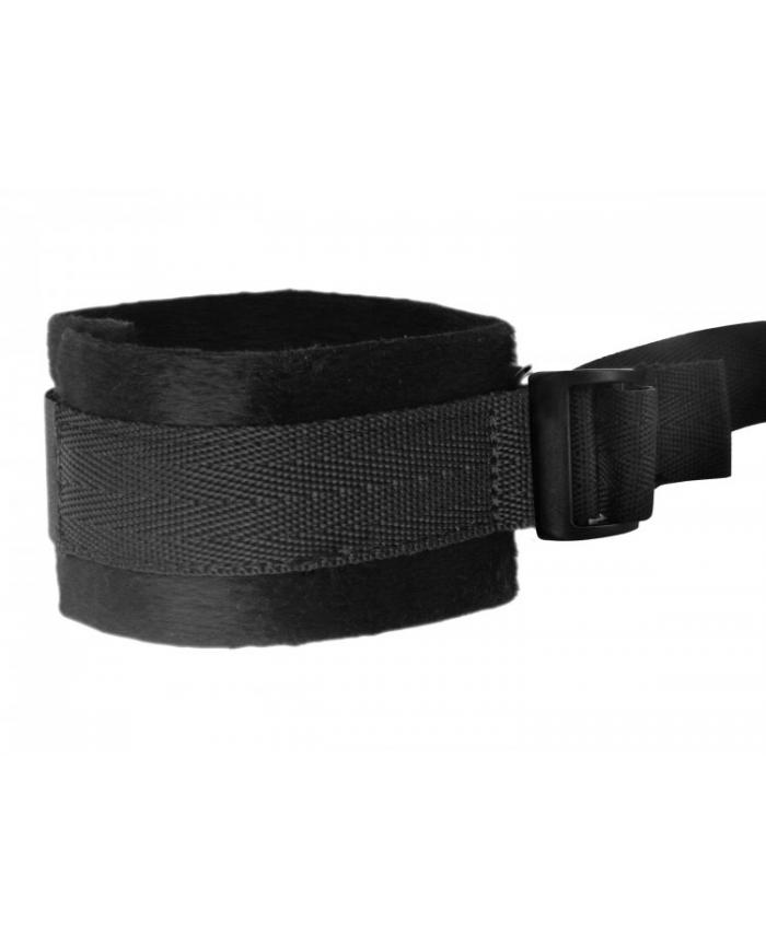 The Frisky Restraint System is portable and easily restrains with H shaped straps which fit underneath any size bed and reach around to securely cuff ankles and wrists, restricting movement. The faux fur finish cuffs are soft and comfortable, yet close securely with heavy duty Velcro. Adjustable buckles allow you to tighten your partner down, putting your partner in compromising positions as you tease and please them until you decide they have earned their release!