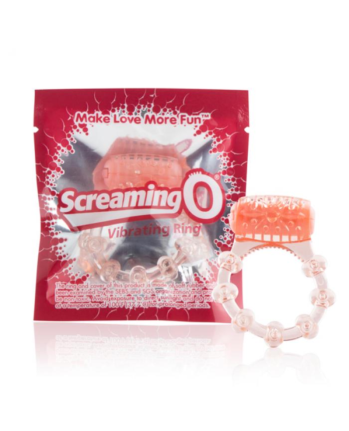 The Screaming O is the award winning revolutionary disposable sex aid that enhances the ability and intensity to achieve incredible orgasms for both partners. With pleasure knobs for him and ticklers for her both partners are stimulated by intense wireless that buzzes throughout the entire ring when worn at the base of the penis. The Screaming O is made of food grade