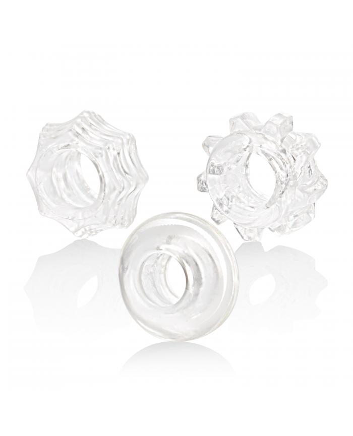 Ultra thick and durable, this 3-ring support set is stretchy and comfortable. The ridges and grooves provide added sensations and the reversible design allows customized and versatile use.